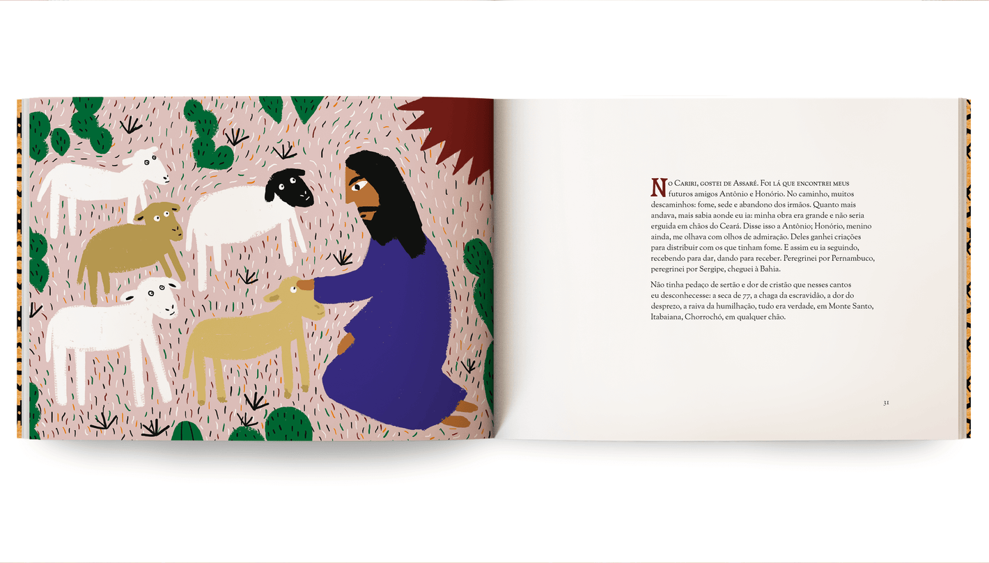 A ilustração cumpre mais do que acompanhar o texto narrativo, com um estilo que nos remete ao sertão nordestino, cada página mostra paisagens das cidades narradas e as cenas históricas que são descritas. A ilustradora apresenta sua percepção da história com cores fortes, mas muito próximas às paisagens áridas, com muitos tons do marrom em contraste com o colorido das casas e roupas, entre outros elementos.