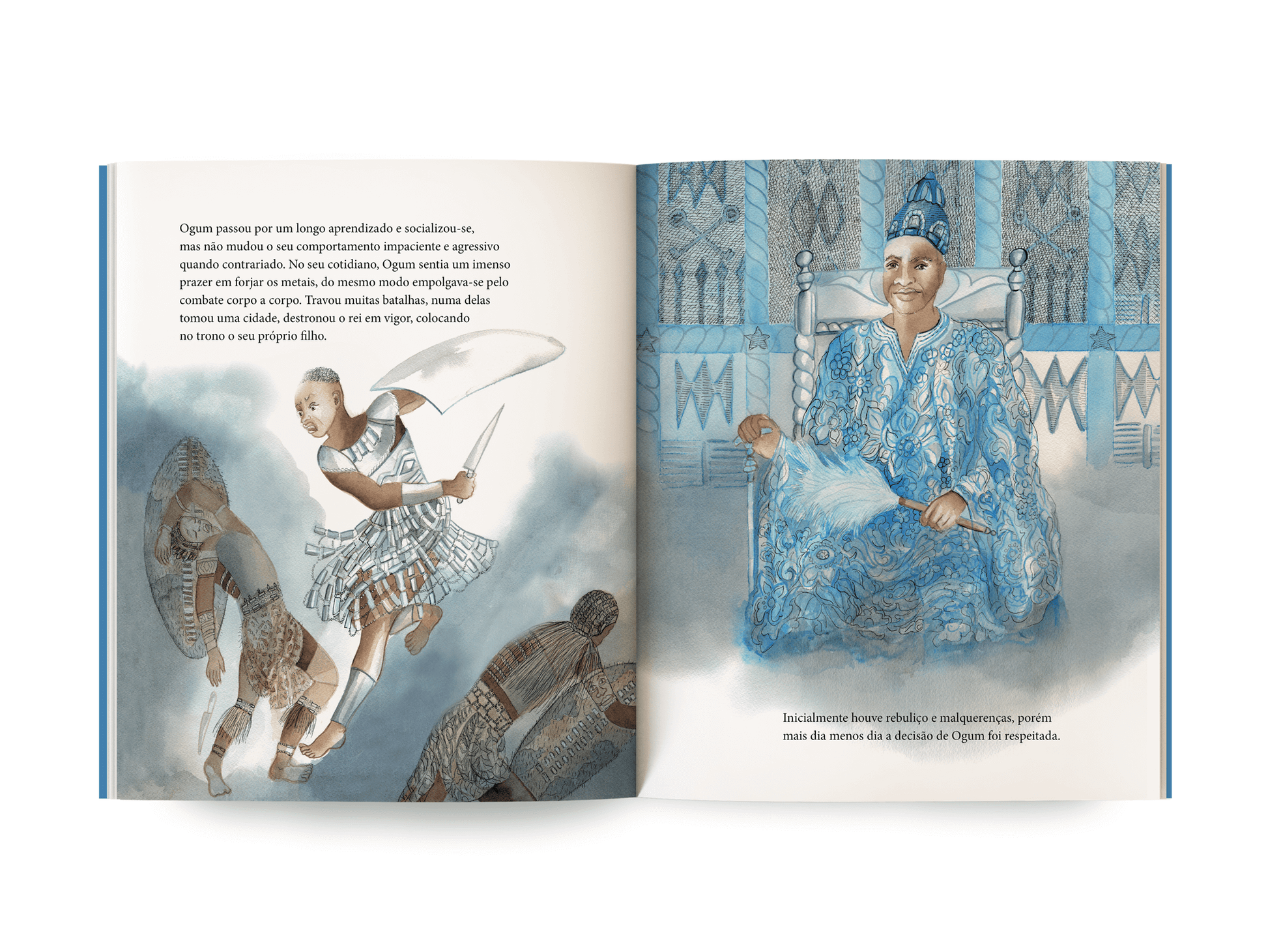 Orixá guerreiro, é conhecido por sua coragem e sua força. Senhor do ferro e das guerras, é quem abre os caminhos com sua espada, pois é o dono das estradas. Ogum é ferreiro, senhor da metalurgia, tendo domínio sobre o ferro e o aço e todas as ferramentas feitas com esses materiais, como a lança, o martelo, a faca, a ferradura e a enxada. Ele é correto em todas as suas condutas e não admite que se tenha outro caminho a não ser o certo. Onde estiver Ogum, lá estarão os olhos da lei.