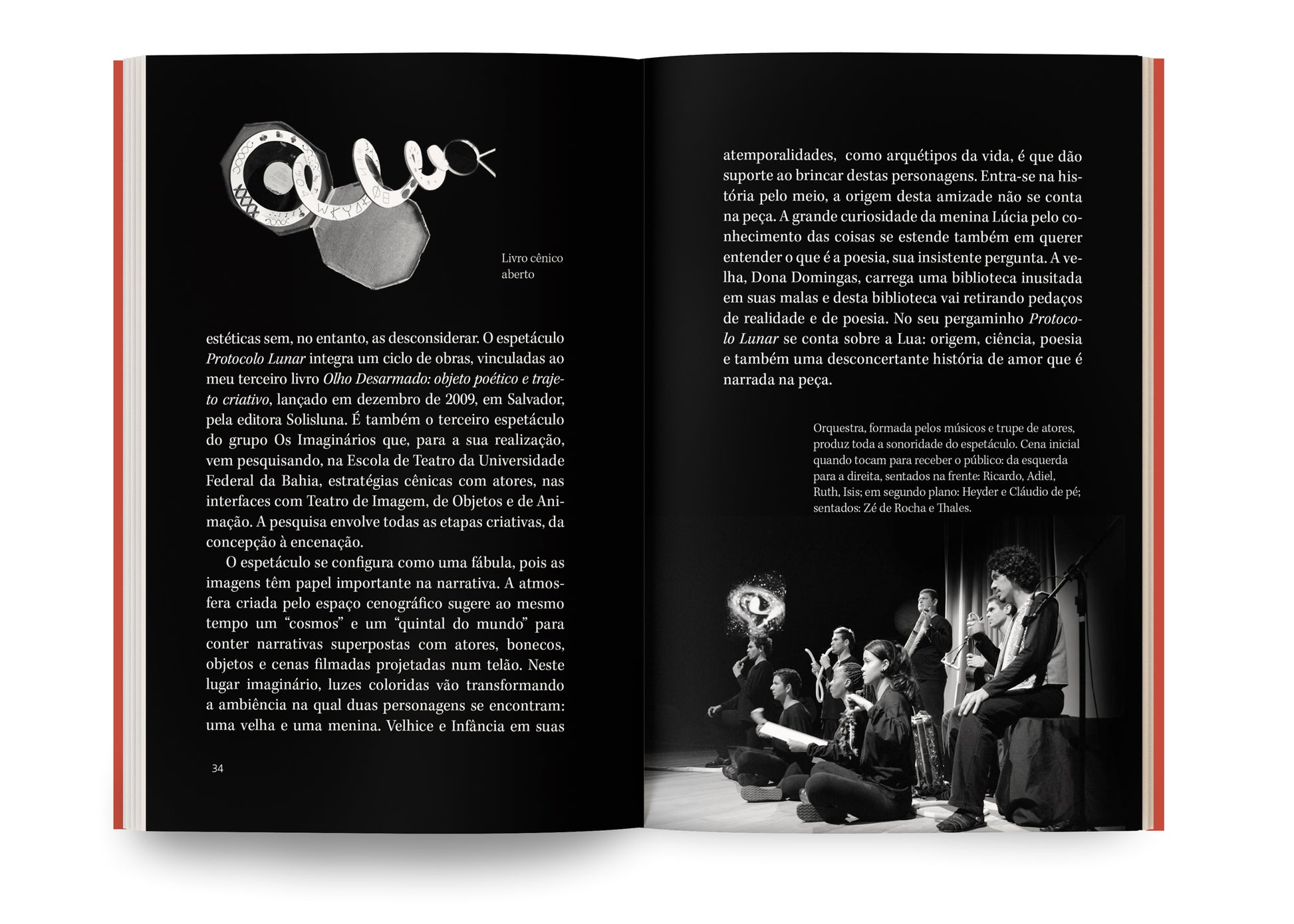 "Encenado pelo grupo Os Imaginários, Protocolo Lunar levou essa fantasia cênica a seus já milhares de espectadores, em diversas temporadas, mostras e festivais. Agora, com sua publicação em livro, o texto se oferta à encenação virtual que todos nós produzimos no ato da "simples" leitura. Cada um poderá percorrer seu quintal particular, conectá-lo a esses amores e estrepolias cósmicas, e descobrir que o "mundo da Lua", antro de loucos e crianças, nada mais é que nosso palco interno, um tablado de sonho onde o desejo está sempre a dançar." Cleise Mendes.
