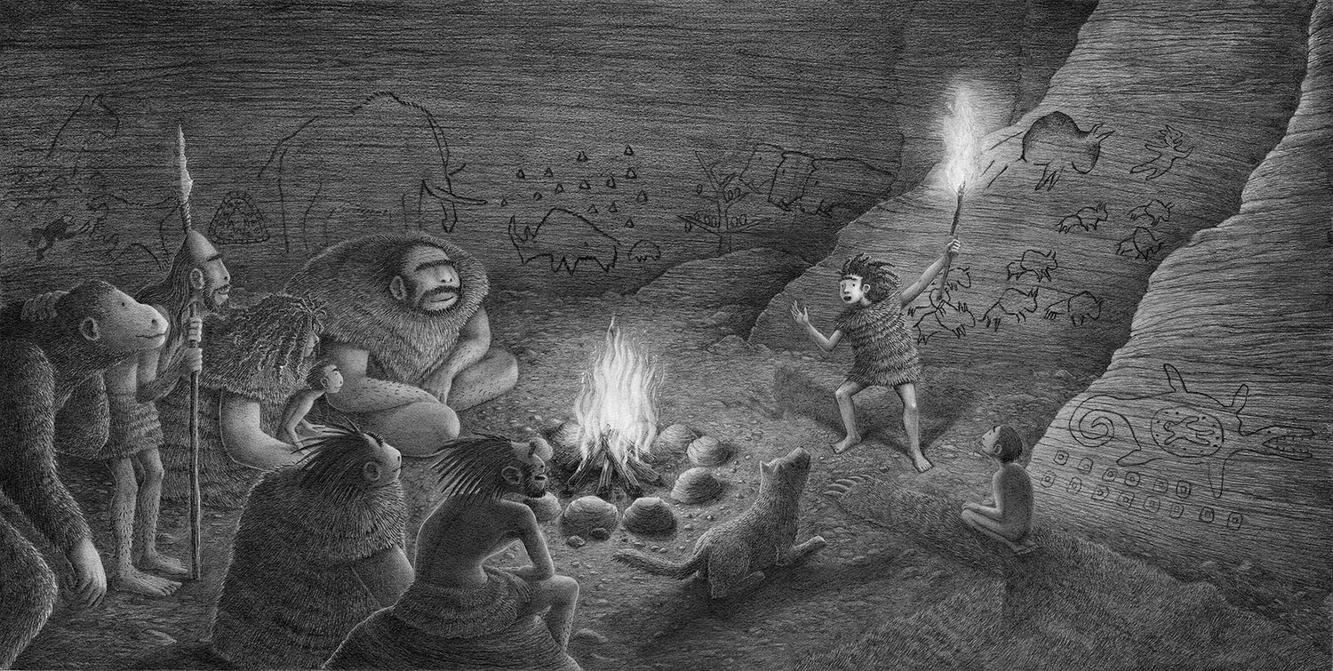 Uma tribo nômade inicia uma viagem para chegar às cavernas que serão seu refúgio durante o inverno. Ao longo do percurso, vemos como a mulher mais jovem está atenta às mudanças da natureza, aos acontecimentos que se evidenciam ao seu redor. Ao chegar ao refúgio, essa jovem vê, na superfície das rochas, a possibilidade – e a necessidade – de expressar o que viveu durante a viagem. Foi assim que, um dia, nos primórdios da existência humana, nasceu a narração, nasceram as histórias que acompanharão a humanidade desde então até hoje.