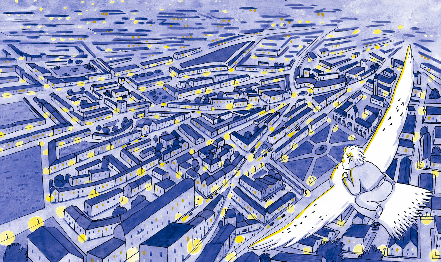 Em meio a conversas e brincadeiras, um menino descobre uma portinha entre as estantes de livros que o transporta para além dos limites da casa. Há o encontro inesperado com uma grande coruja-das-neves, que o convida a se aventurar sobre as ruas da cidade iluminada. Envolto pelo mistério da noite, o tempo parece fluir de forma diferente e a sensação de encantamento o acompanha a cada instante. Ele descobre um mundo nunca antes imaginado, onde a escuridão é repleta de possibilidades. Terá sido um sonho? Ao acordar no dia seguinte, tudo parecia normal outra vez. Mas algo permanecia no ar, um vestígio, um segredo...